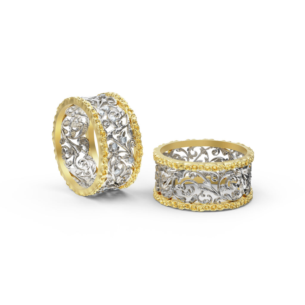 I can deliver 3D files and photorealistic visuals, as well as produce fitting prototypes, raw metal castings, or fully finished jewelry.