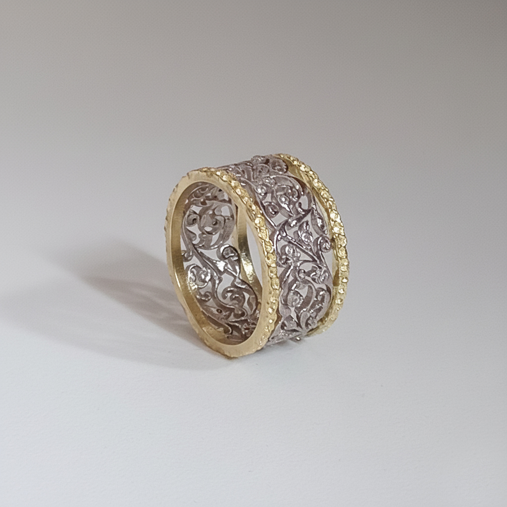 My background in traditional jewelry-making, hands-on bench experience, and training alongside a master jeweler–stone setter enable me to design pieces optimized for manufacturing and stone setting, while controlling costs and production constraints.